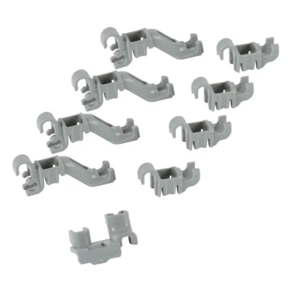Svorky 00632372 koša umývačky riadu Bosch a Siemens. Tieto svorky na uchytenie hrebeňov koša v umývačke sú vhodné do spodného koša umývačky riadu Bosch a Siemens modelových rád SMS SMV SN6 SN2 SMI SMU SN5 SN4 SX6 SBV S51 SPV SPS SR6 S41 S52 3VS SR2 SPI SR5 SX5 SN7 a iných (kompletný zoznam nižšie).